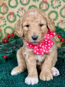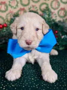 Our puppies are all weaned and ready to go home, or enter our Doodle Prep School, at eight to Twelve weeks of age depending on size. All puppies enrolled in Doodle Prep School are kept current on their vaccinations and each puppy is examined by our veterinarians as part of their regular health checkups.