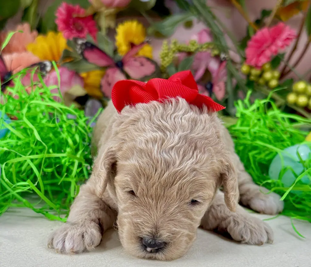 This puppy is part of our Early Adoption program, which allows families to secure their doodle while theyโ€™re still a young baby. Confirming with your puppy balance officially adopts this specific puppy and reserves them for your family. As they grow, youโ€™ll receive updated photos, videos, and notes on their developing personality, and youโ€™ll still receive their full litter temperament overviewโ€”just like all of our families. Itโ€™s a special way to watch your doodle grow from the very beginning while still enjoying the structure and support of our program. ๐Ÿ’›๐Ÿพ