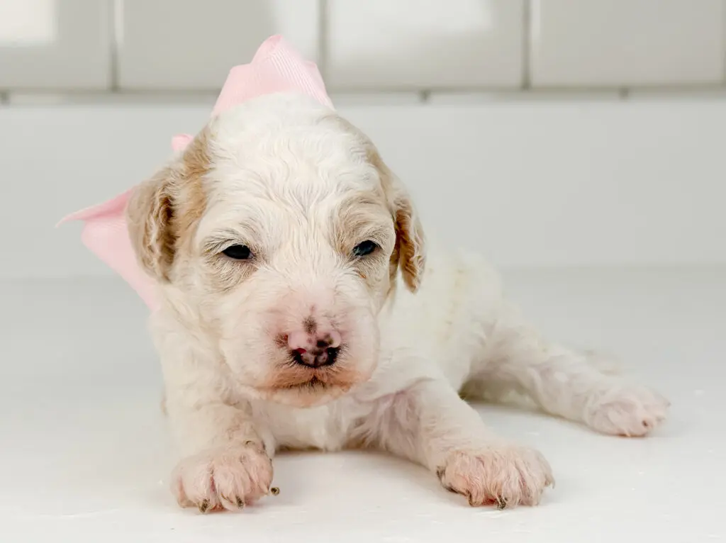 This puppy is part of our Early Adoption program, which allows families to secure their doodle while theyโ€™re still a young baby. Confirming with your puppy balance officially adopts this specific puppy and reserves them for your family. As they grow, youโ€™ll receive updated photos, videos, and notes on their developing personality, and youโ€™ll still receive their full litter temperament overviewโ€”just like all of our families. Itโ€™s a special way to watch your doodle grow from the very beginning while still enjoying the structure and support of our program. ๐Ÿ’›๐Ÿพ