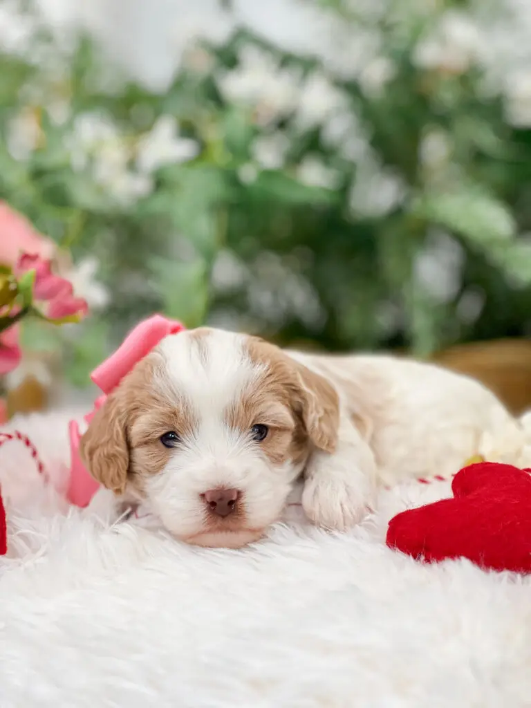 Once your puppy application + deposit have been submitted, simply click the "Adopt Me" button to adopt me right off the pageโan Adoption Specialist will follow up with you right away!